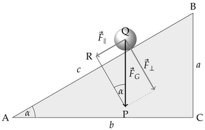 $$\frac{F_{\parallel}}{F_G}=\frac{a}{c}\;\Rightarrow\;F_{\parallel}=mg\frac{a}{c}$$